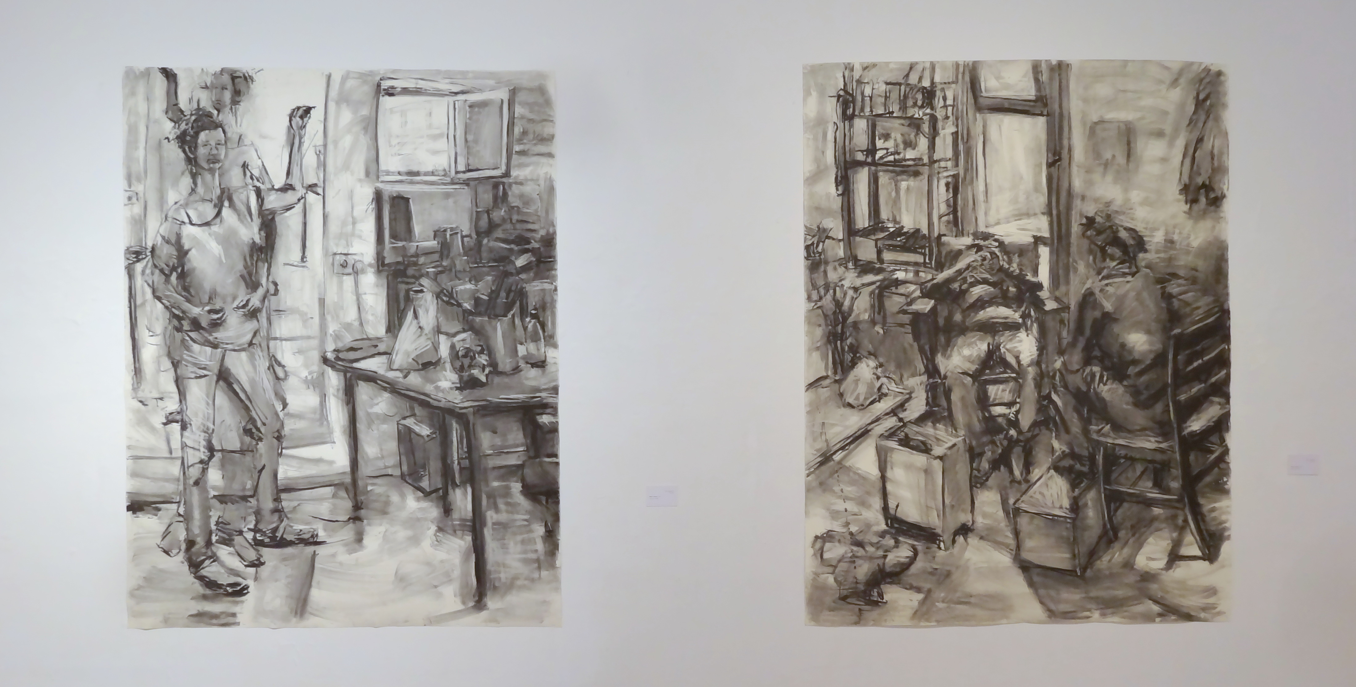 The scratchy energy of these drawings is what first caught my attention, then what kept it was the depth of the image. All with lowly simple charcoal.