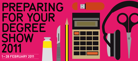 - View/download Planning your degree show – A practical guide – from AxisWeb.org – 2011 [PDF] – excellent check-list style guide for your degree show, summarised from Paul Glinkowski’s white paper, Maximising the MA Show