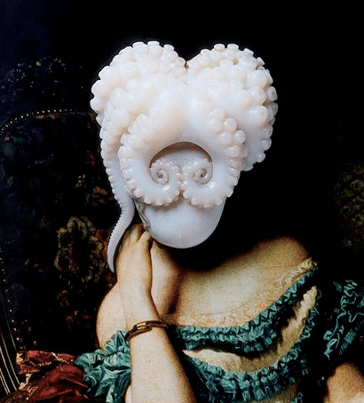 Foxes seem to have played a big part in Victorian life; Miss Pokeno creepily preserves a skulk of the bushy-tailed creatures twisted into the back of a red velvet “Trophy Chair“, while flowers and butterflies in exaggerated numbers floated around the “Re-imagined Parlour”. Among objects, videos, and decor, there are more than a few octopus-faced (or limbed) lads and ladies such as those in Dan Hillier’s digital art prints.