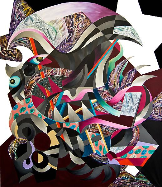 Iraqi-born London- and Paris-based artist Athier Mousawi refers to a range of influences that coalesce in his large intensely-coloured works presented in “Man of War” at Edge of Arabia, in partnership with Ayyam Gallery and EOA.Projects.