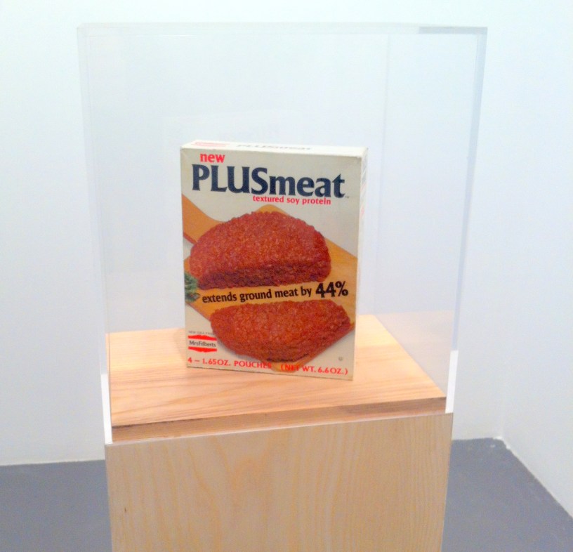 In the other room, Jafri displays a selection of failed or recalled food-related projects from not-too-distant history, including a box of “PLUSmeat” a soya-based additive for minced meat, to make the hamburger budget stretch a little. Or maybe it was a proposed product for those who like the idea of a vegetarian diet, but only want to commit to 44% of one.
