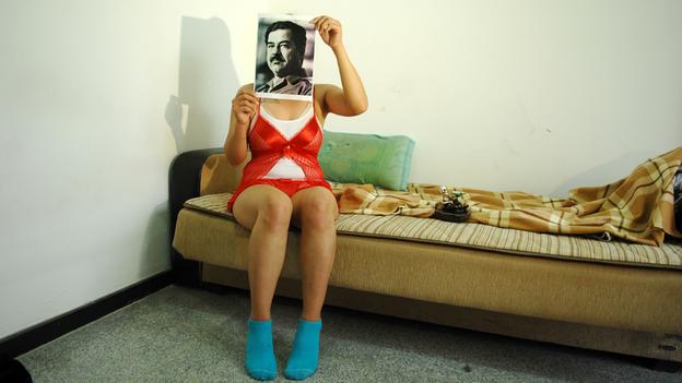Continuing along the map, the northeast corner of Iraqi Kurdistan is covered by Jamal Penjweny’s short films and a set of photographs featuring former dictator Saddam Hussein as a mask for Iraqi folks in their homes and workplaces. These are adjacent to quirky domestic household objects painted by Cheeman Ismaeel which are no longer useful in their original capacity; as in Ismaeel’s “our little screen” (2010), the TV that no longer does any of the talking but now carries an enigmatic message written directly on its face.