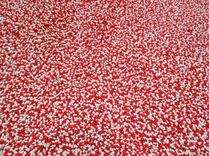 I feel as uninhibited as a toddler in front of this “Pill Clock“, an untidy pile of captivating red and white. What happens if I take and swallow one of these capsules… or not? (Answer: I put one in my pocket instead and at the time of this writing, haven’t found it again.)
