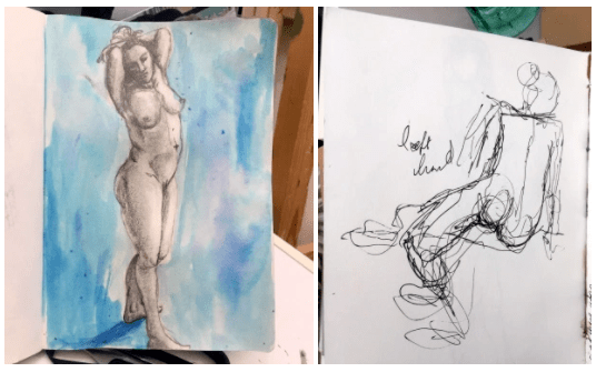 Recommended for: adults only (there is a nude model and alcohol); date night; night out with friends; beginners to experienced drawers