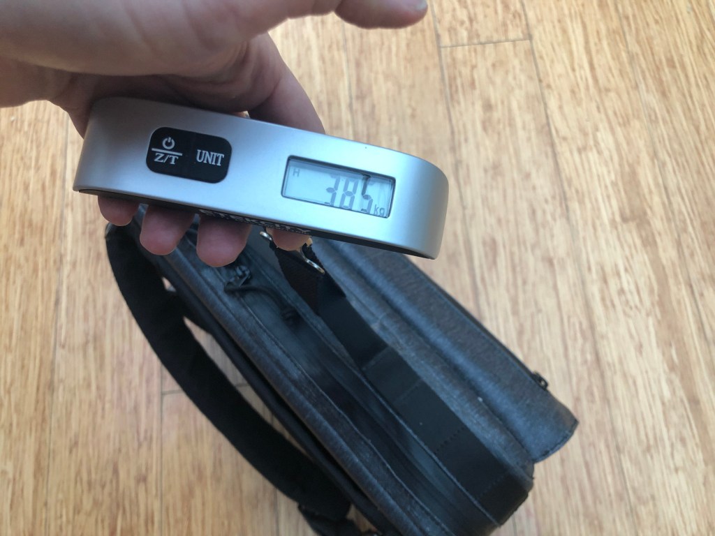 Blimey, for an empty bag, it was much heavier than I remembered… maybe it’s the waterproof material it’s made of that makes it feel heavy (sort of a thick plasticky canvas that makes it feel and look like a little suitcase)?